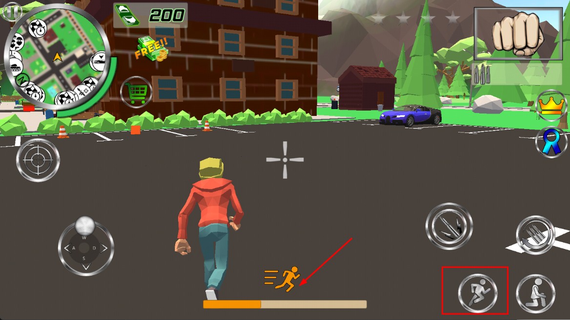 3、若需要快速移动,点击跑步按键,让角色进入奔跑状态,加快行进速度。