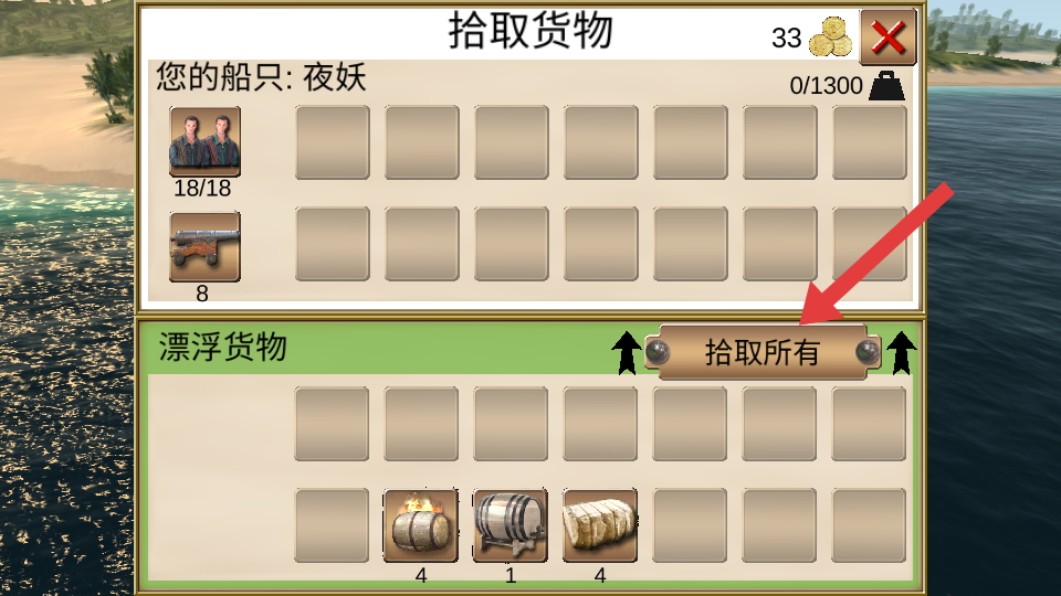 4、在弹出的【拾取货物】界面中,点击【拾取所有】按钮,将漂浮货物收入囊中,补充物资继续冒险。