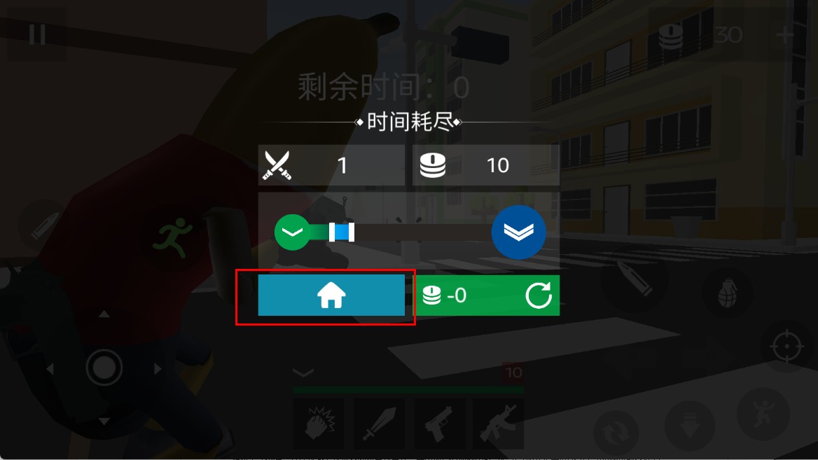 4、游戏时间耗尽或结束后,点击房子图标按钮,可返回游戏主界面。