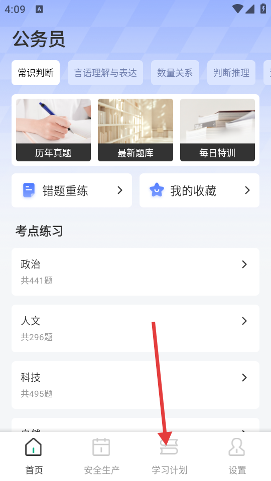 2、进入后,点击底部【学习计划】选项,进入学习计划页面。