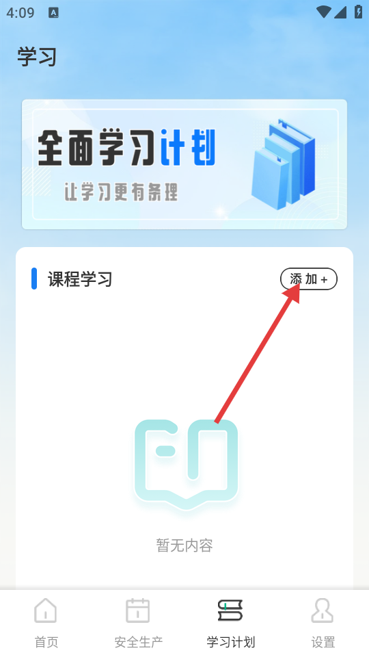 3、在学习计划页面,点击【添加+】按钮,弹出添加计划窗口。