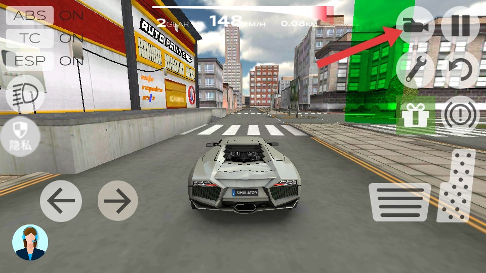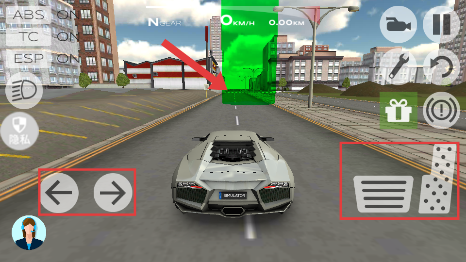 2、利用左下角【左右方向键】控制车辆方向,通过右下角【油门和刹车】控制车辆加速与减速。