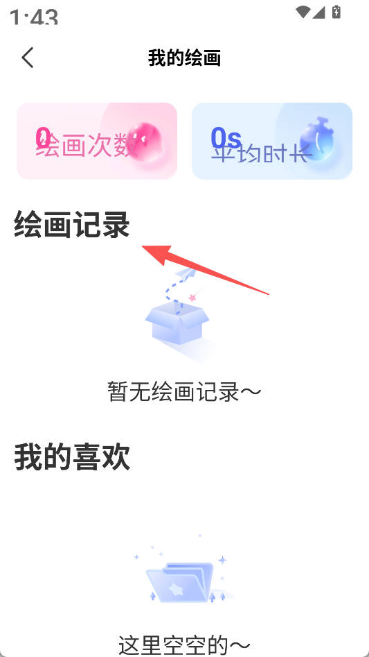 3、拥有个人管理功能,进入“我的”页面,能查看绘画次数、平均时长,以及绘画记录和“我的喜欢”内容。