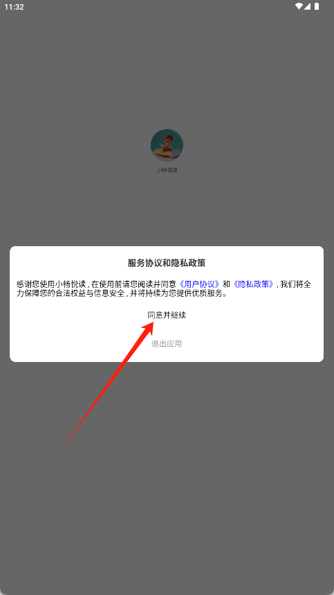 1、启动软件后,在服务协议和隐私政策弹窗中点击蓝色“同意并继续”按钮。