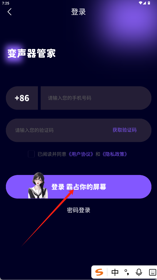 1、在登录界面中就可输入手机号和验证码,点击“登录 霸占你的屏幕”按钮进行下一步操作。