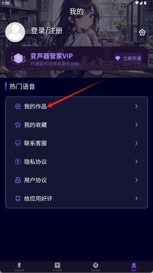 3、在“我的”页面中找到并点击“我的作品”功能选项。