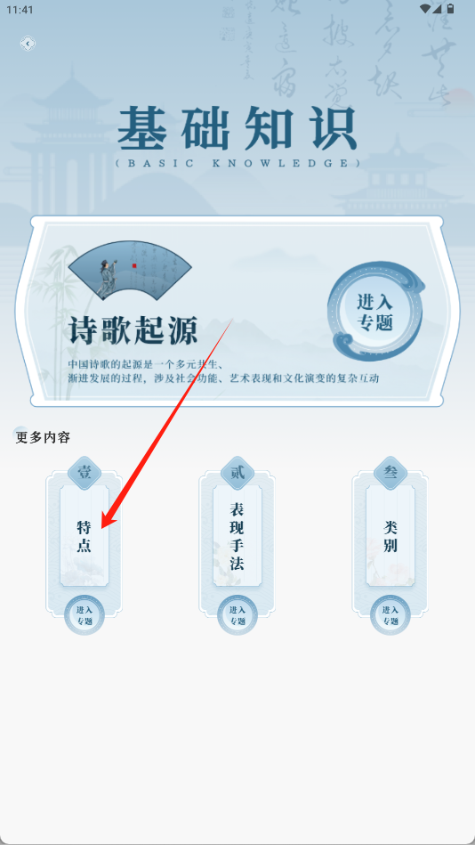2、将诗词学习与国学工具相结合,附带汉字字典、成语词典等辅助查询功能,扩展知识边界。