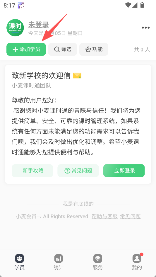 1、专注于课时管理,围绕学员添加与统计展开功能设计,满足机构对课时相关事务的管理需求。