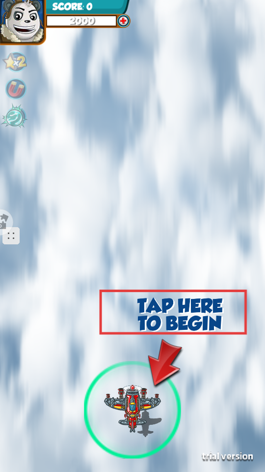 1、点击【TAP-HERE-TO-BEGIN】区域启动游戏,操控战机进入太空空战场景准备战斗。