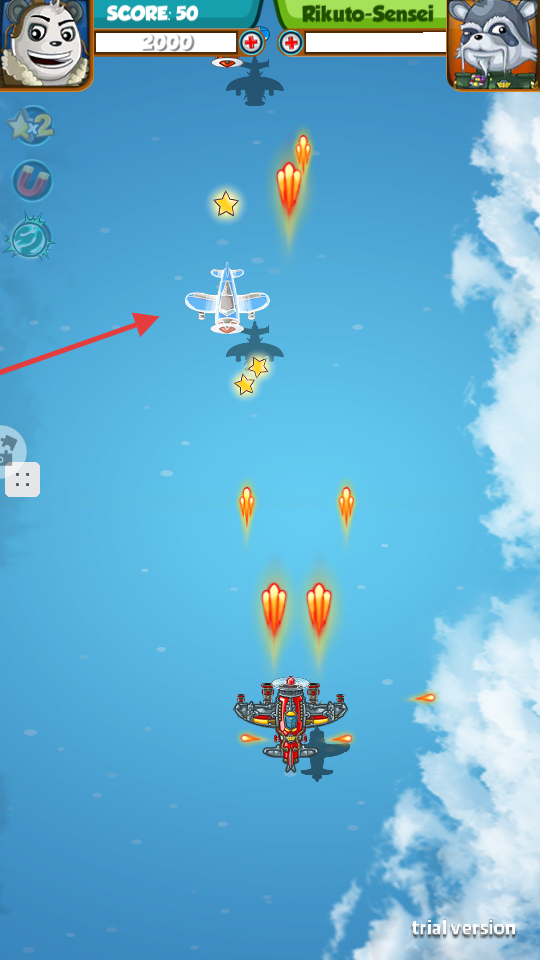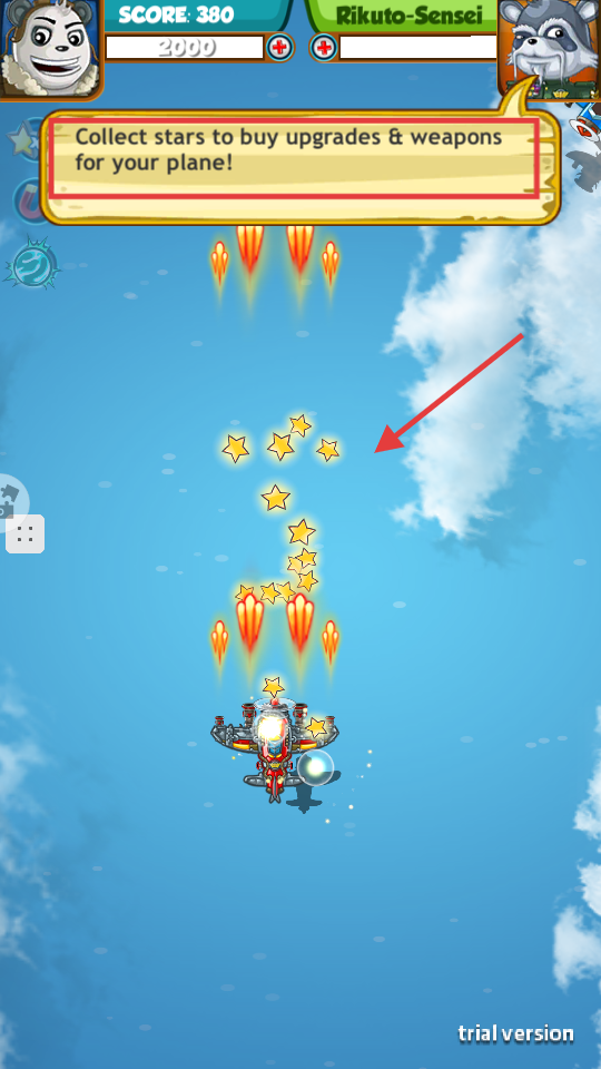 3、积极收集【星星】,按提示可用于购买战机升级部件与武器,提升战机战斗力。
