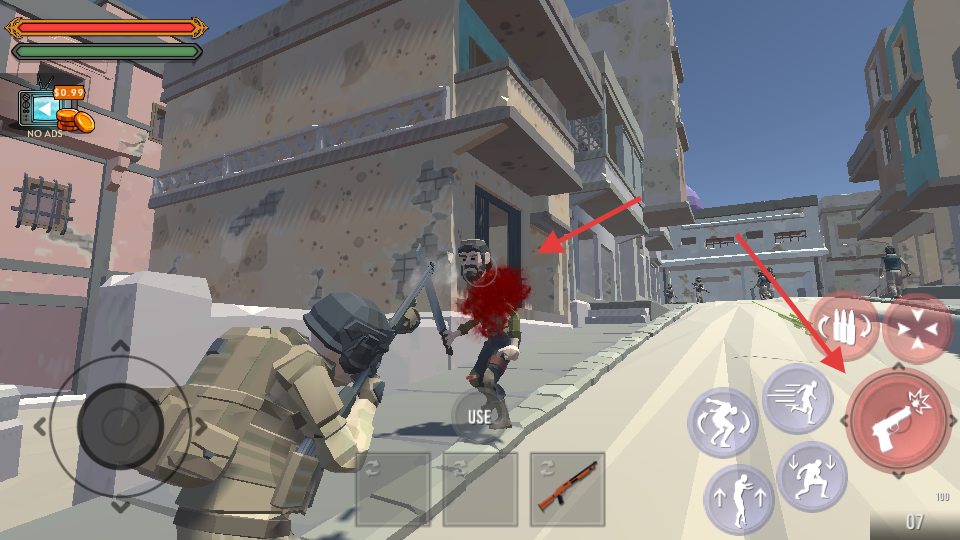 3、近距离遇敌,按【射击】键攻击,精准瞄准,同时留意周围敌人。