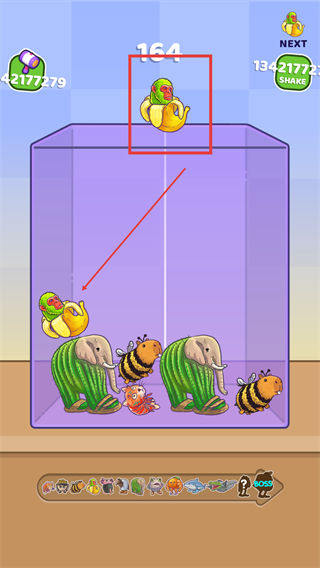 3、按照指引将顶部的【香蕉猴】拖至左侧相同的【香蕉猴】处,合并升级获取更多积分。