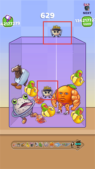 4、将【面条人】移到同类角色旁合并,快速积累分数推进游戏关卡。