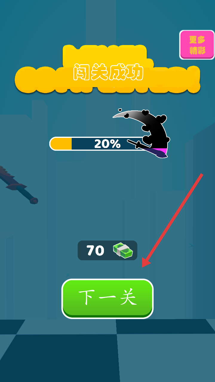 4、闯关成功后,点击下一关按钮,继续挑战后续关卡,获取70货币奖励并解锁新内容。