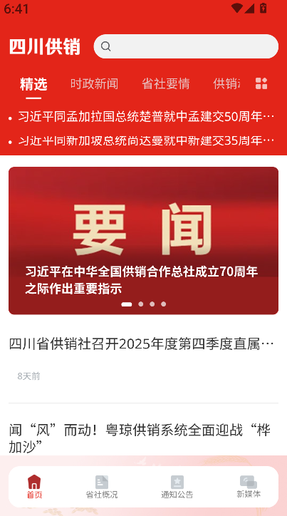 1、进入《四川供销》app首页,可浏览精选要闻板块,了解最新的供销系统动态与农业发展资讯。