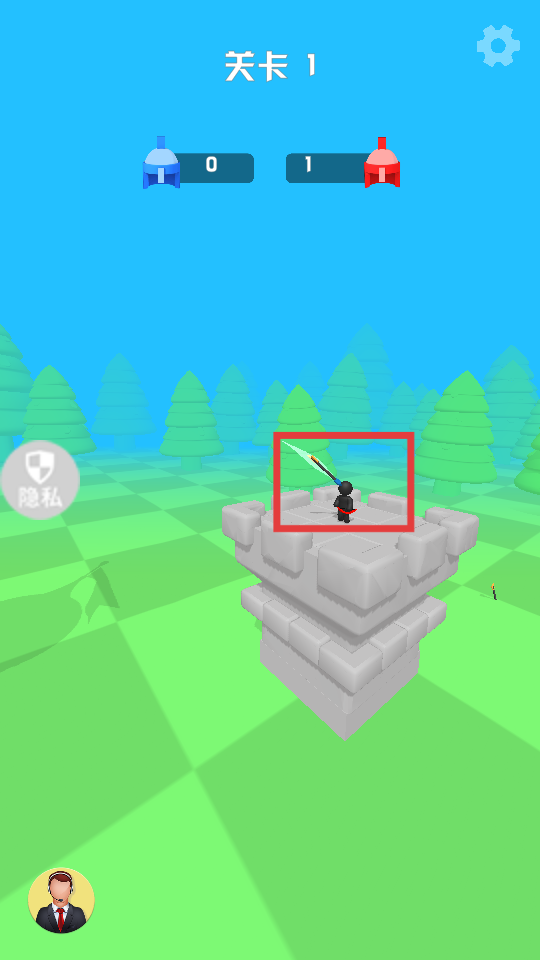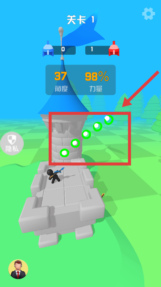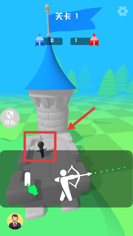 1、进入“关卡1”,操控城堡上的黑色小人,准备对战。