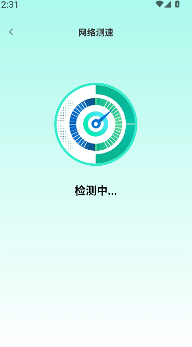 2、应用开始自动进行网络测速,对当前连接的网络进行延迟、上传及下载速率的实时检测与分析。