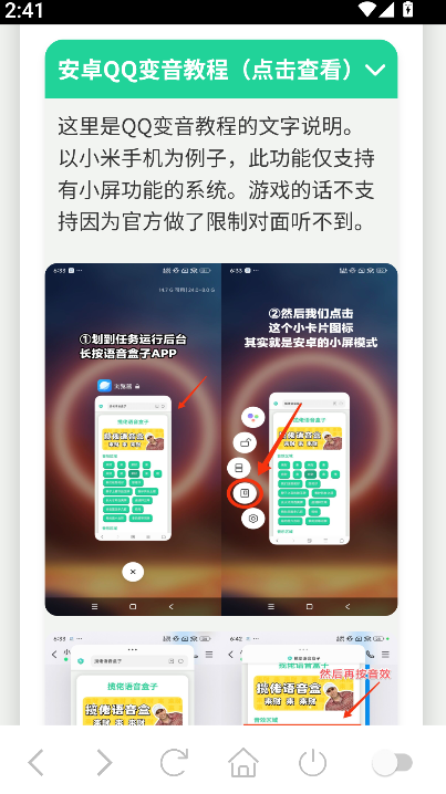 3、在安卓QQ变声教程中,可按照页面说明完成相关设置,使变声效果在聊天或语音通话中正常生效。
