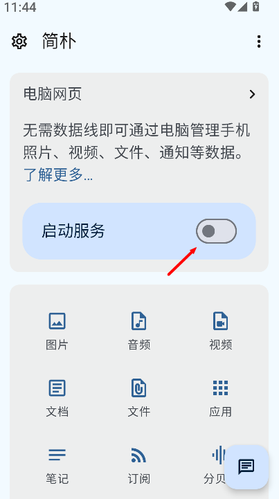 1、打开《简朴》app后,首先需要启动服务,启动后方可正常进行图片浏览与管理操作。