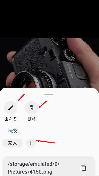 4、在展开的菜单中,可对图片执行删除、重命名或添加标签等操作,方便进行分类整理与内容管理。