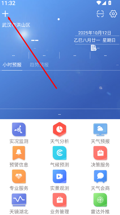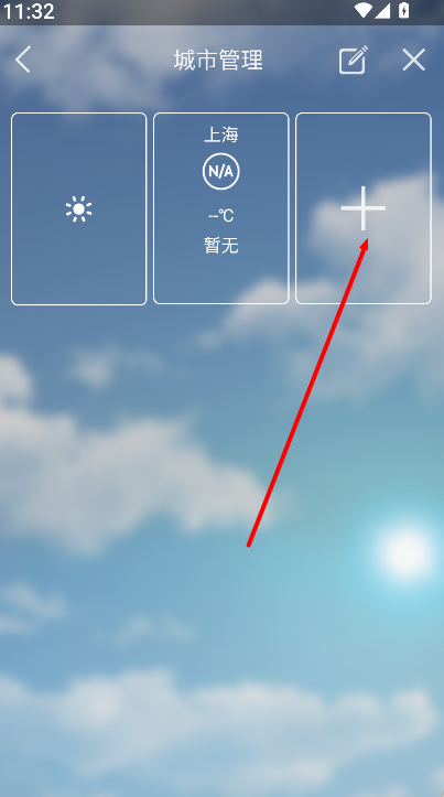 1、打开《极目天气》app后,点击主界面左上角的“+”号按钮,可进入城市管理页面,开始添加需要关注的城市。