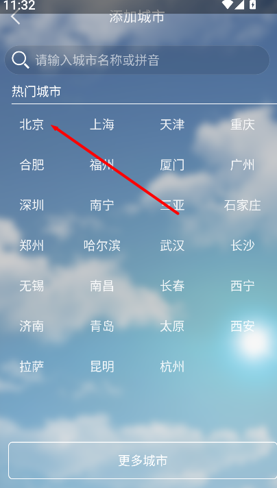 2、在城市搜索栏中输入或选择想要添加的地区名称,系统将自动显示相关城市列表,方便进行选择。