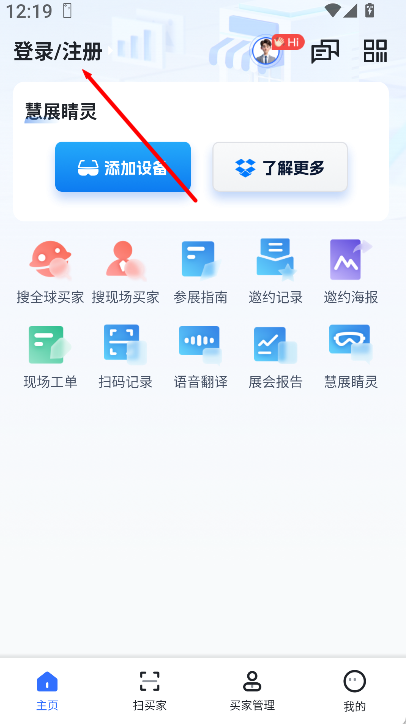 1、进入软件主界面后,点击左上角的“注册登录”入口,进入账户管理页面,可选择登录或新注册操作。