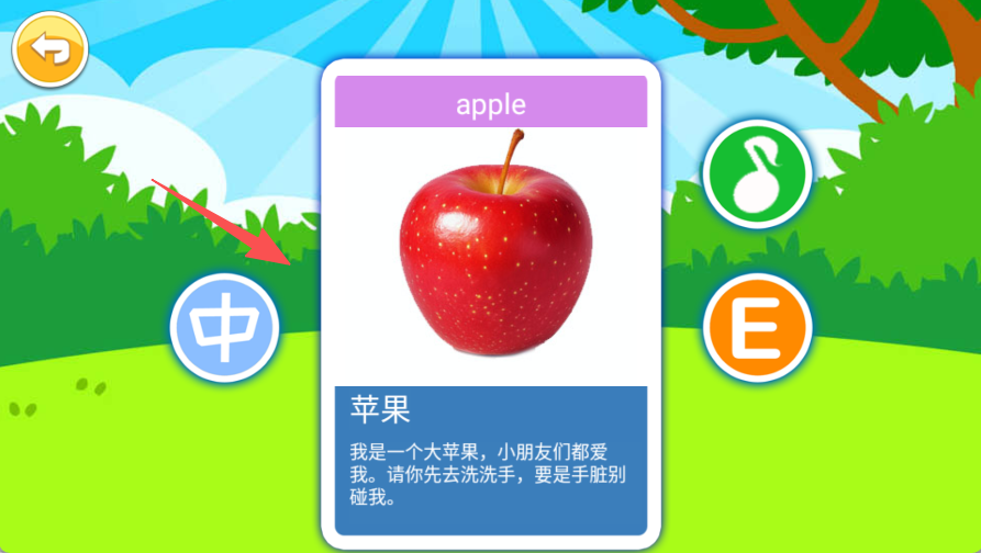 2、提供认知卡片查看,可查看包含事物图像、中英名称、描述文字的卡片,获取相关认知知识。