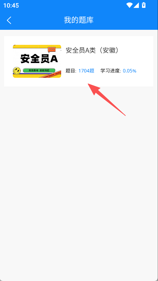 2、选择安全员A类安徽题库,进入题库详情。