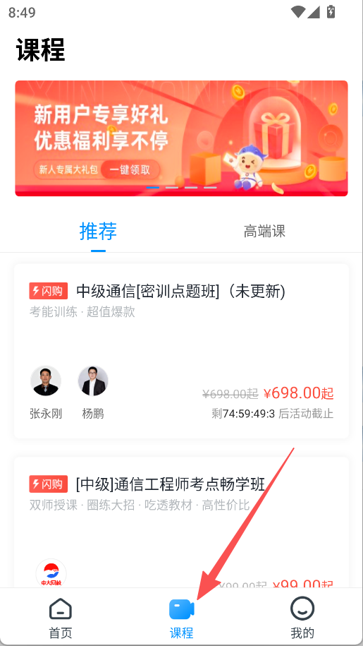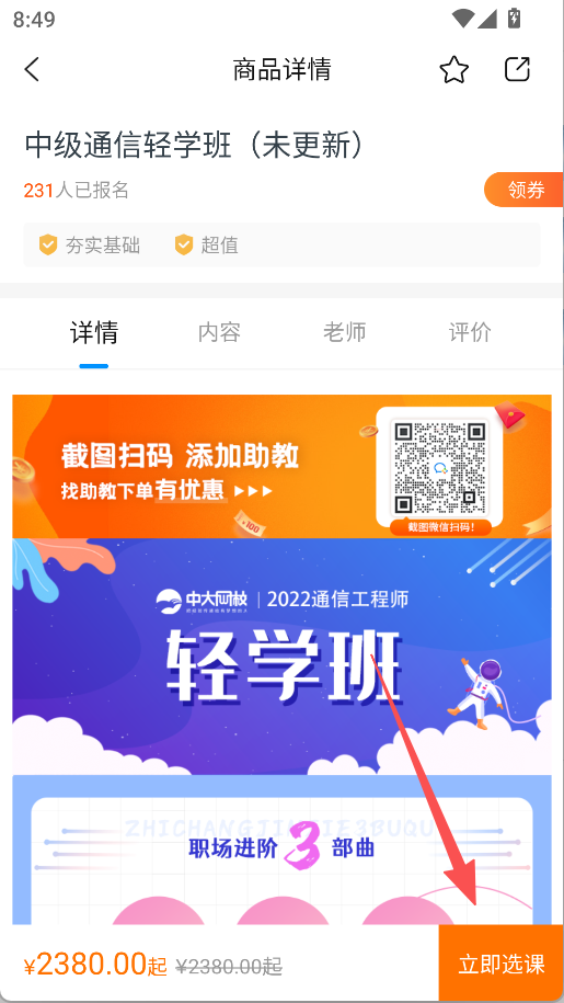 2、在课程页面选择目标课程,点击进入商品详情页。