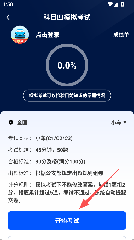 3、适配全国小车驾考,按公安部规则组卷,助力学员掌握知识,提升考试通过率。
