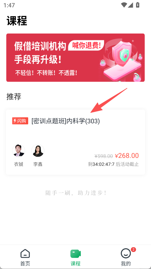 2、支持课程学习功能,可参与密训点题班,系统学习考试内容。
