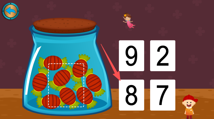 1、进入糖果场景、数罐中糖果数量、选择对应数字。