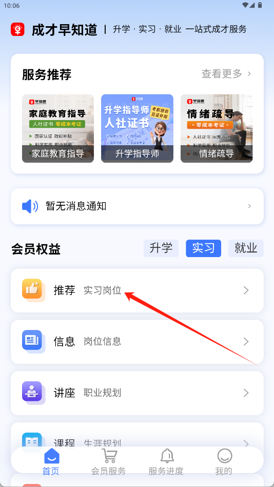 《成才早知道》是一款聚焦学业与职业发展的一站式服务平台。软件以升学、实习、就业为核心服务链,覆盖从学业规划到职场就业的全周期需求。界面设计简洁清新,功能模块清晰划分升学指导、实习机会、就业信息三大板块。通过整合教育资源与企业需求,提供精准的升学规划、实习推荐及就业岗位匹配服务。帮助用户系统规划成长路径,高效获取实用信息与专业指导,助力实现学业与职业的顺畅衔接。