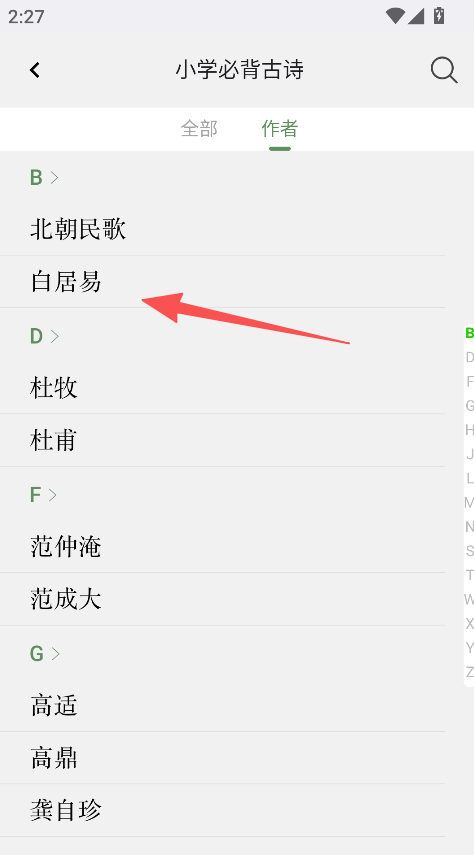 2、拥有作者检索功能,能通过诗人姓名快速查找其作品,方便按作者学习诗词。