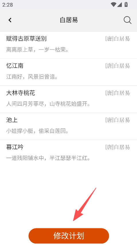 2、提供修改计划功能,可定制诗词学习节奏,助力有规划地开展诗词学习。