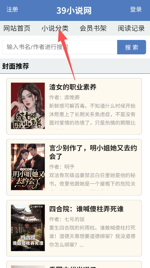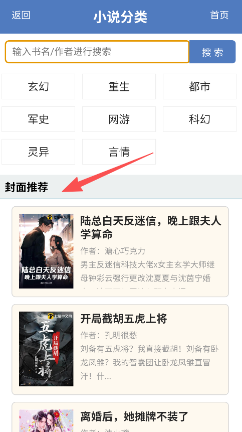 2、支持书名、作者搜索功能,输入关键词检索小说,快速找到目标书籍。