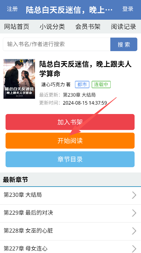3、阅读流程简洁,找到小说后点击开始阅读即可开启,加入书架功能方便后续续读,操作无门槛。