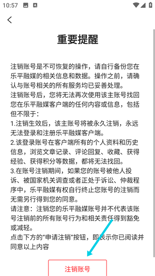 4、阅读【重要提醒】后,点击【注销账号】按钮,即可完成账号注销流程啦。