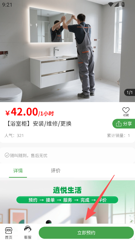 3、点击立即预约,完成服务预订。