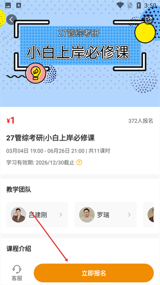 3、查看课程信息后,点击底部的【立即报名】按钮。