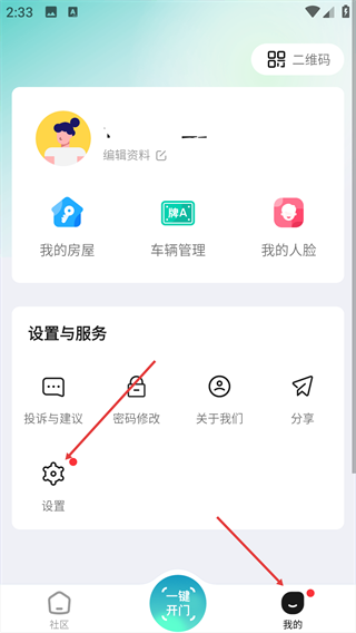 1、进入软件,点击【幸福家园】可选择或切换小区。