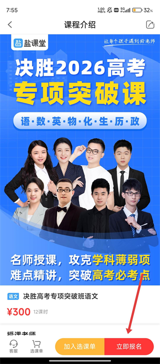 4、在课程介绍页确认信息后,点击【立即报名】,就能成功报名课程,开启高考冲刺学习之旅啦。