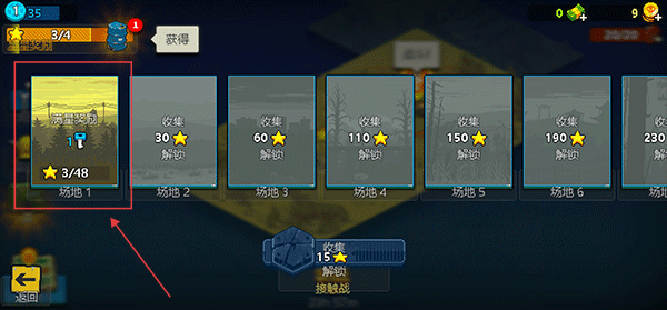 1、选择【场景1】进入关卡,完成任务收集星星,积累足够数量可解锁后续更高难度的关卡挑战。