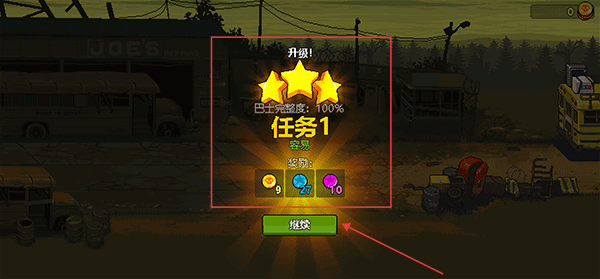 4、点击【继续】,领取奖励,继续游戏,推进任务进程。