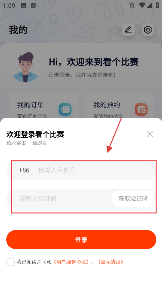 3、输入手机号和验证码。