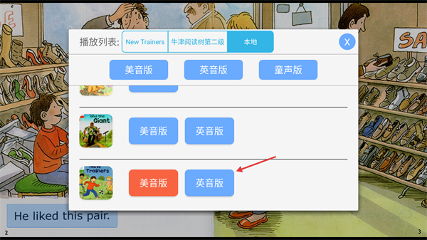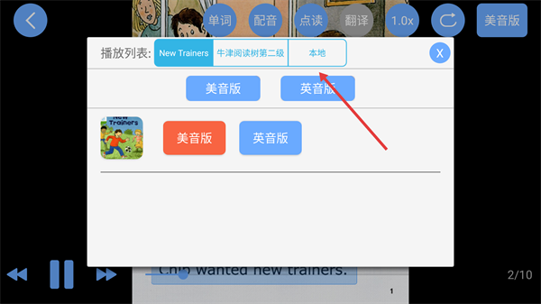 2、进入播放列表界面,可查看当前绘本支持的语音版本,选择本地音频。