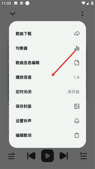 4、找到“播放倍速”选项,可通过该选项调整歌曲的播放速度。