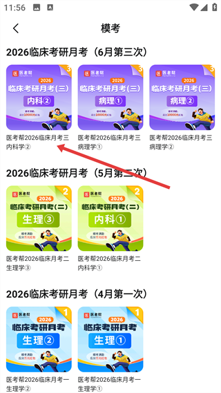 2、在模考页面,选择目标模考科目进入详情页呀。