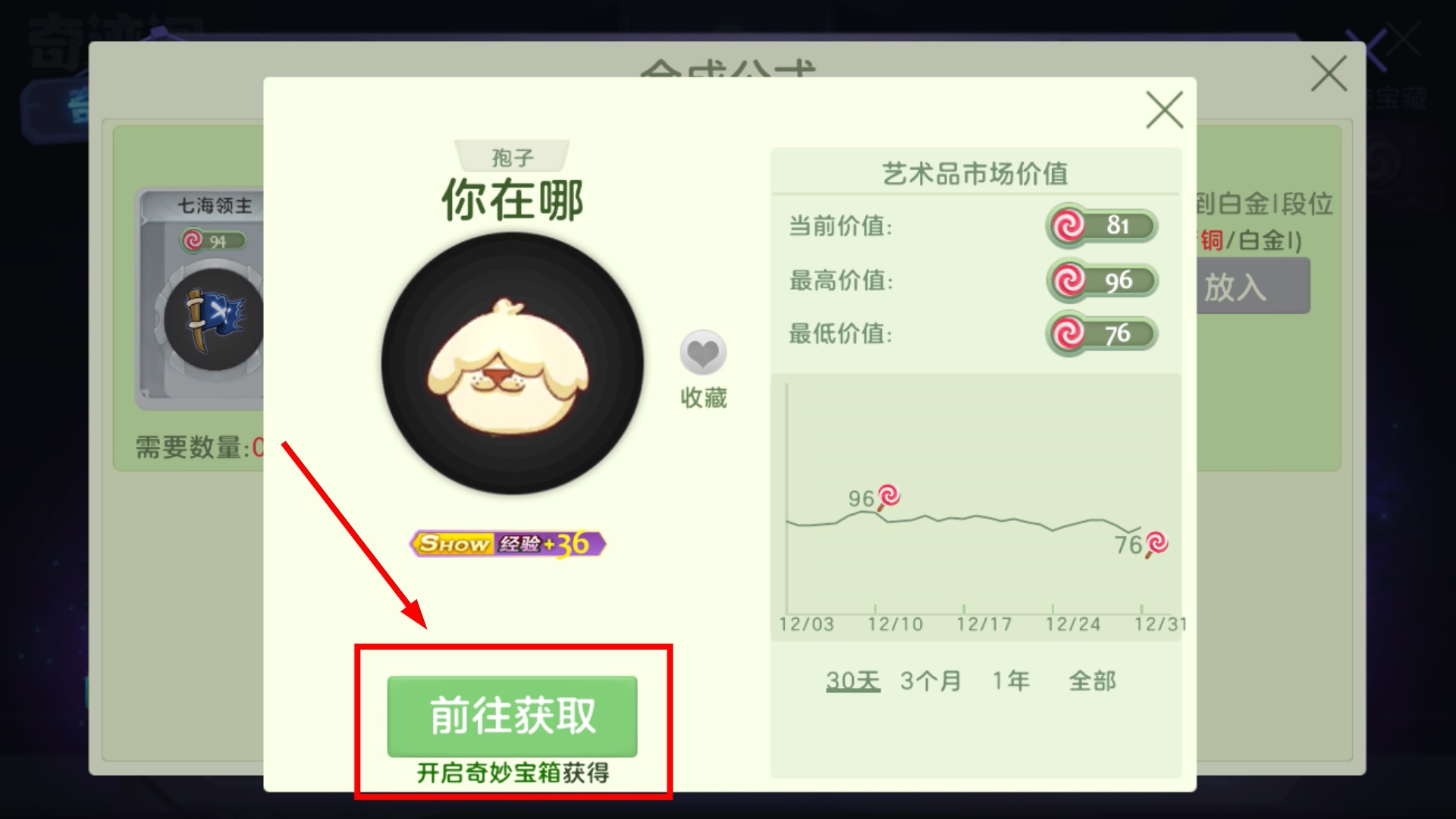 4、获取【你在哪】可点击前往开启奇妙宝箱,其【当前价值-81】【最高价值-96】【最低价值-76】,可关注价值波动。